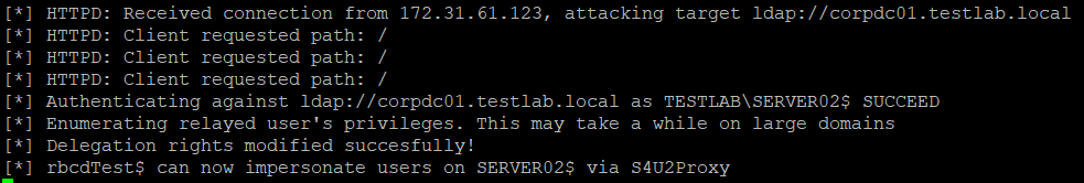 controller and modified the object’s privileges to give rbcdTest$ impersonation